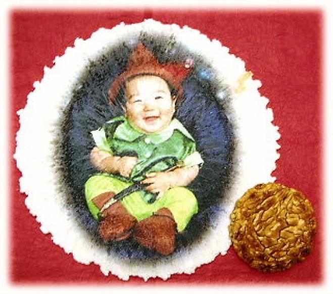 | 特徴 | 美味しいお煎餅にフル・カラーで高品質なプリントが可能です。写真・イラスト・文字など1枚の煎餅に多彩に表現出来て、他社様と違い特殊プリント方式ですので細かい所も鮮明に表現出来てグラデーション等も可能です。文字も自由に選べて世界に一つの貴方だけのオリジナル煎餅が1枚より作れます。 カラー・プリントに使われる可食インクは国の安全基準をパスした、とても安全なものです。一つ一つ透明(厚口)の袋(50番)に入り(乾燥剤入)上部には可愛い巾広リボン、または(組紐)でデコレーション!!巾広リボンも20色の中から貴方の好きな色を選ぶ事が出来ます。 (化粧箱入りの場合は、使用する化粧箱に幅広リボンを付けます) 更に責任票(裏ラベル)に商品名(11文字)やメッセージ(19文字)も無料印刷致しますので完全オリジナル煎餅が出来上がります。別売りの専用化粧箱(300円)も用意しており更にその化粧箱にプリント加工(特価300円)も可能ですので、お問い合わせ下さい。 ※ 化粧箱に入れる事により破損の心配も無く、送料も1ランク下(80サイズ)の料金で216円のお得で、当店お薦めプランになります。 また只今、期間限定で化粧箱入りを選択したお客様に対して1箱に1枚毎に化粧箱代金に相当するオリジナル煎餅300円が1枚プレゼントされ超お得です! ※サンプル写真に一緒に写っている小さな煎餅は、大きさを比較する為の物でジャンボ煎餅に添付されてる訳では御座いません。 【賞味期限】4ヶ月(120日) 【煎餅素材】ジャンボ煎餅(かに)煎餅サイズ:25cm前後 【化粧箱】1枚入300円 巾広リボン付き(送料が1ランク下がり、お得です) ※ 化粧箱入りジャンボ煎餅の期間限定サービス! 化粧箱代に相当するオリジナル煎餅1枚300円がプレゼントになります!! 【化粧箱:印刷】特別価格300円(大好評 お得です!) ※化粧箱は金色の化粧輪ゴムを使用しており包装紙では包んでおりません(更に包装する場合は別途料金が発生します:包装+手提げ付き:100円) |