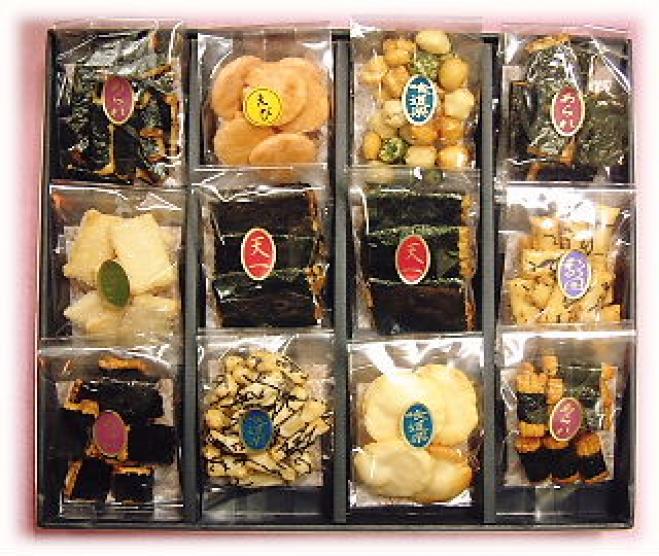 | 特徴 | 天一の美味しい煎餅、あられを12種類ほど集めました。 海苔巻きあられ、鉄板焼など味の逸品揃いです。 |